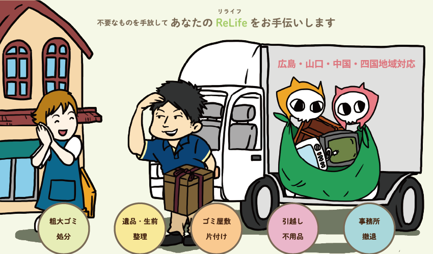 不用品回収・買取りと遺品整理を軸に、庭の草刈りなどの依頼も受け、なんでも屋としても活動している。雰囲気が「銀魂」の主人公、坂田銀時に似ていることから、『リアル万事屋』の異名も持ち、独特で不思議な雰囲気がなぜか人に安心感を与えている。